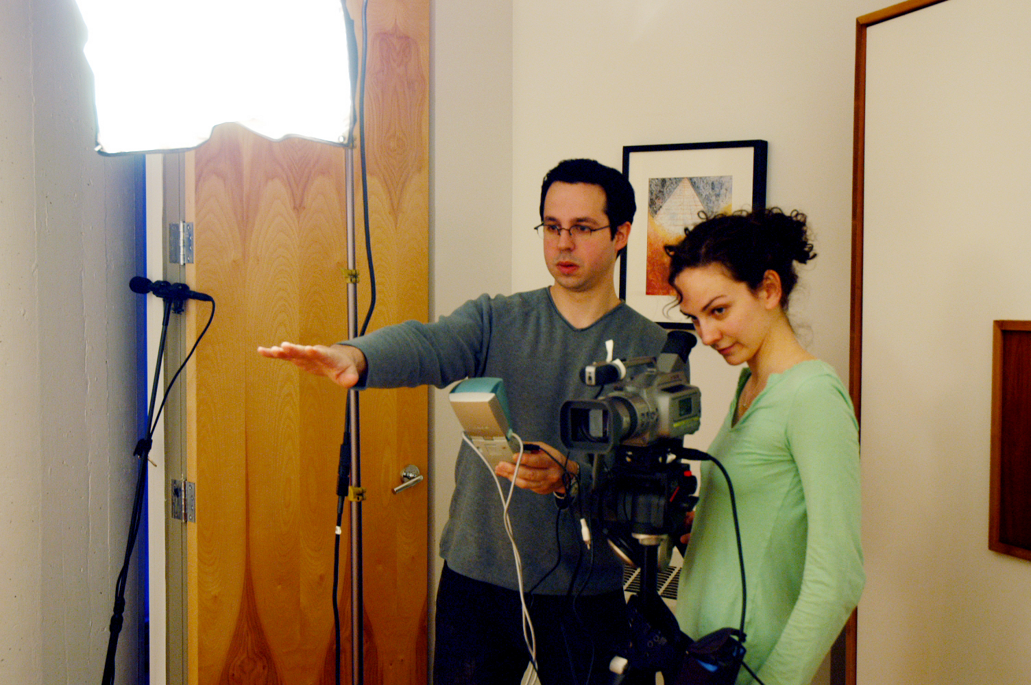 Adam explains what a light is. (It's the thing he's pointing at)